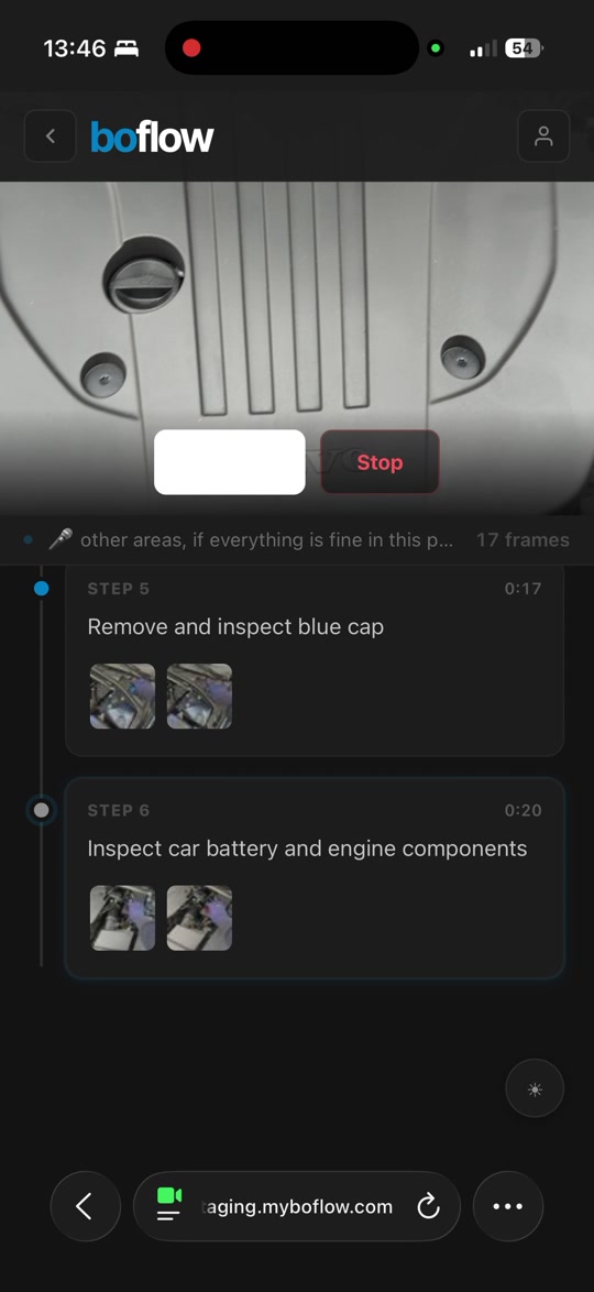 Open BoFlow on your phone. Walk through any process like you're showing a new hire. The camera captures everything AI needs. Five minutes, not five hours.